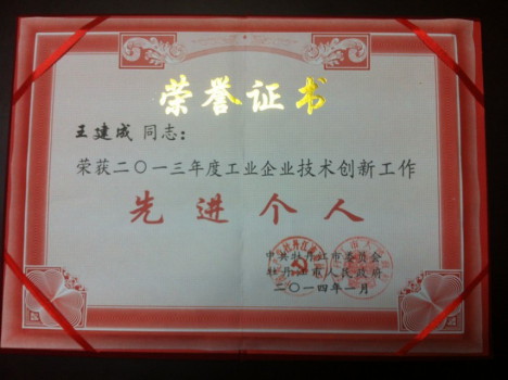 為樹立榜樣,市委市政府決定,授予一批工業(yè)立市先進單位,其中,牡丹江金盟電器有限公司獲此殊榮。同時,王建成總經理被授予“技術創(chuàng)新先進個人”稱號。